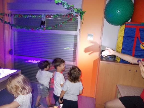 Una de les propostes que més agrada als infants és manipular, jugar i experimentar amb la llum i la foscor. Durant aques curs hem fet diferents propostes al voltant d'aquesta temàtica. Amb les taules de llum els infants poden experimentar com la llum es projecta segons els diferents materials proposats. Però també podem jugar amb la llum i les obres que projecta el nostre propi cos.