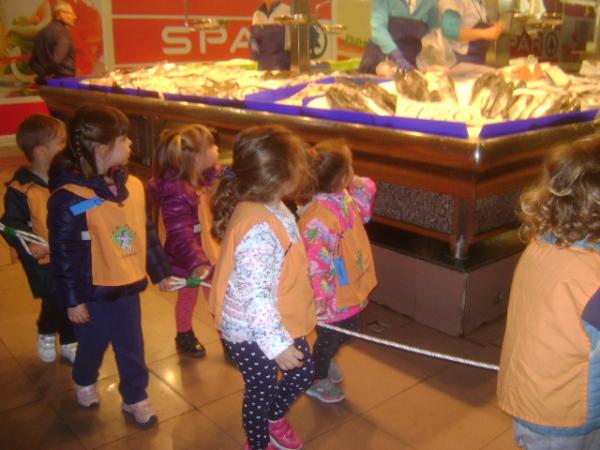 Els infants de 2-3 anys visitem el Mercat del Carrilet, allí els paradistes ens han ensenyat tots els queviures que tenen per vendre. Hem comprat i demà farem un esmorzar per tota l'escola.